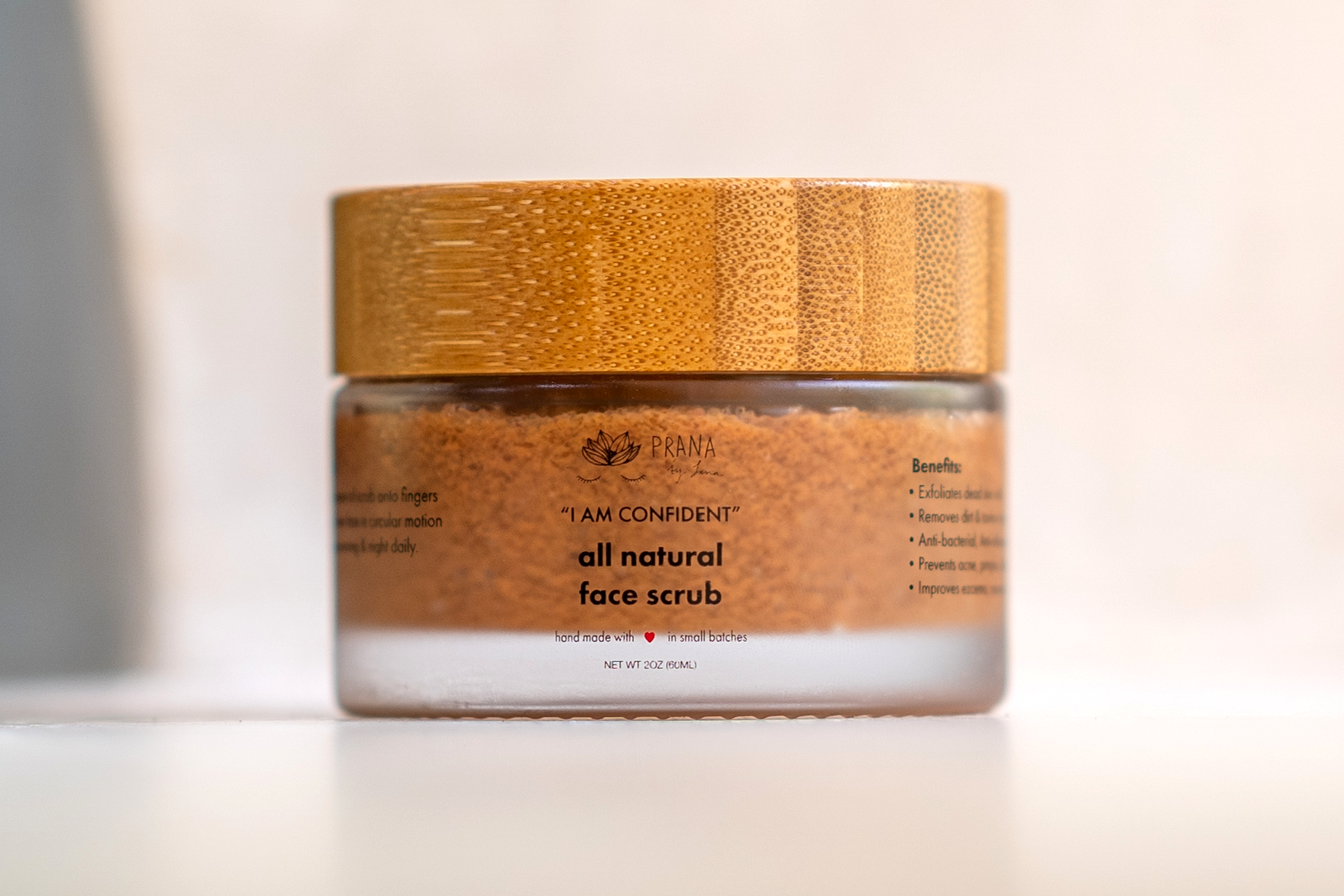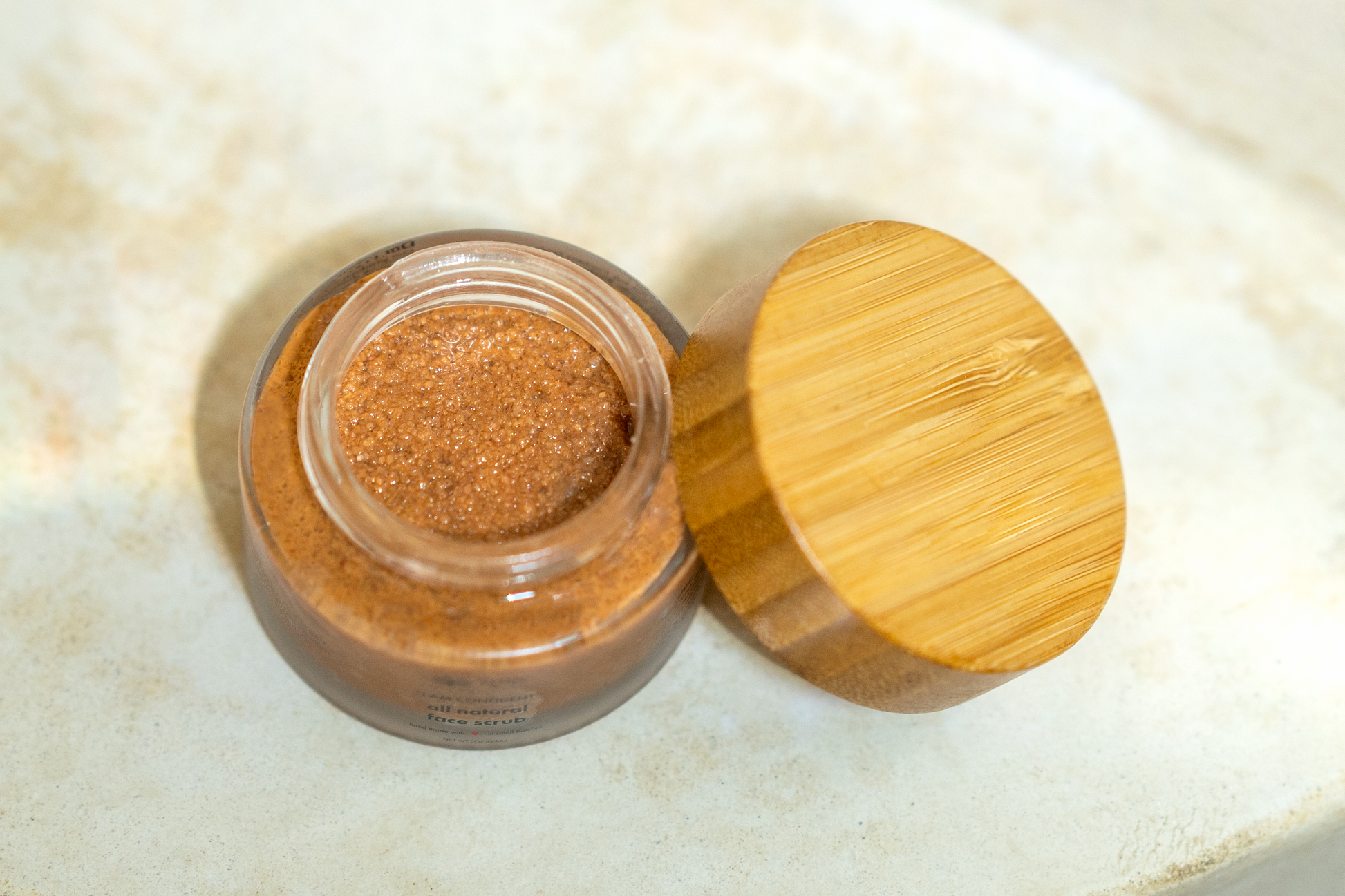 - Use your coconut spoon to scoop about a nickel-sized amount of scrub