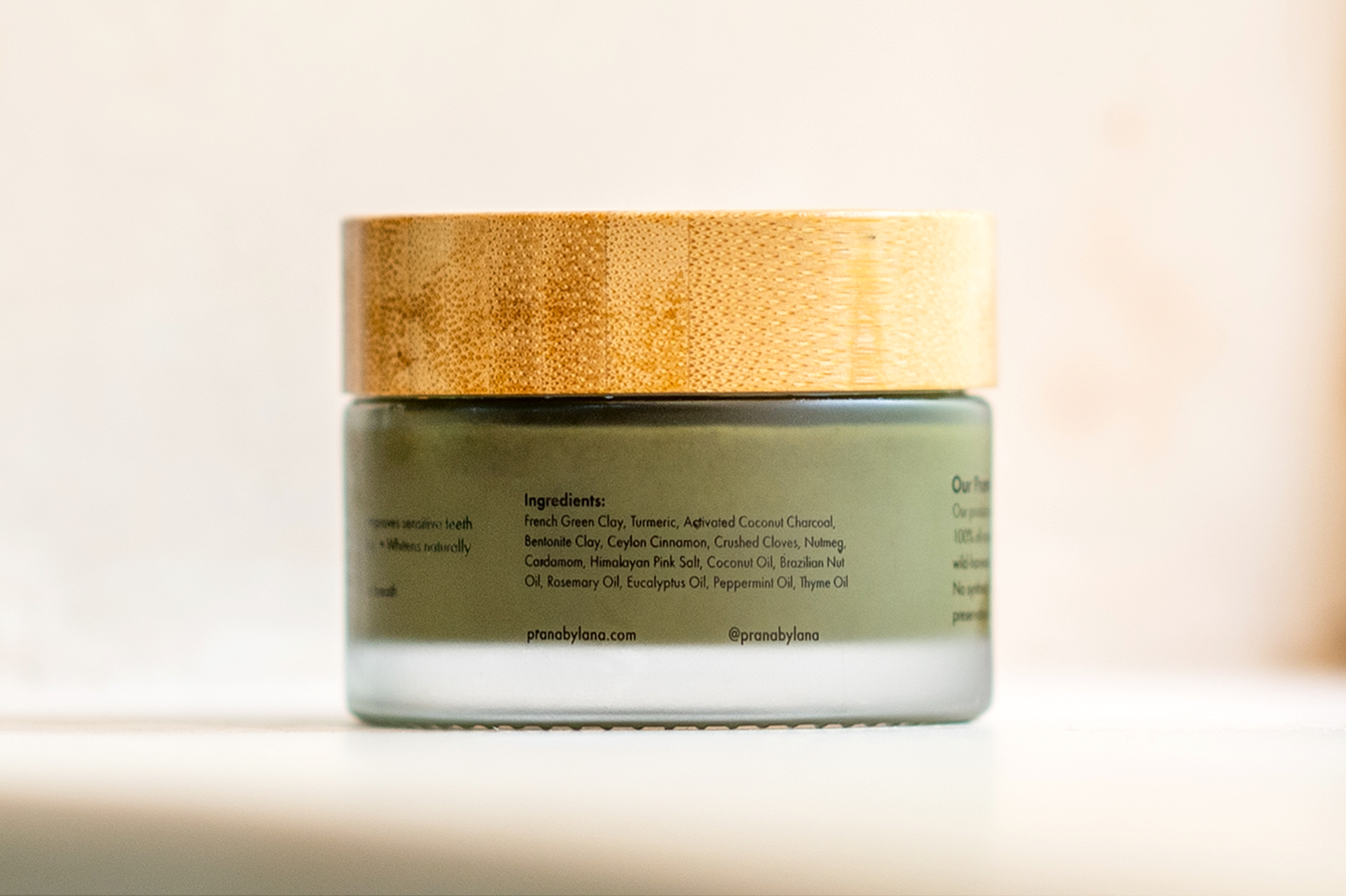 French Green Clay, Turmeric, Activated Coconut Charcoal, Calcium Bentonite Clay, Cinnamon, Crushed Clove, Nutmeg, Cardamom, Himalayan Pink Salt, Coconut Oil, Brazilian Nut Oil, Rosemary Oil, Eucalyptus Oil, Peppermint Oil, Thyme Oil