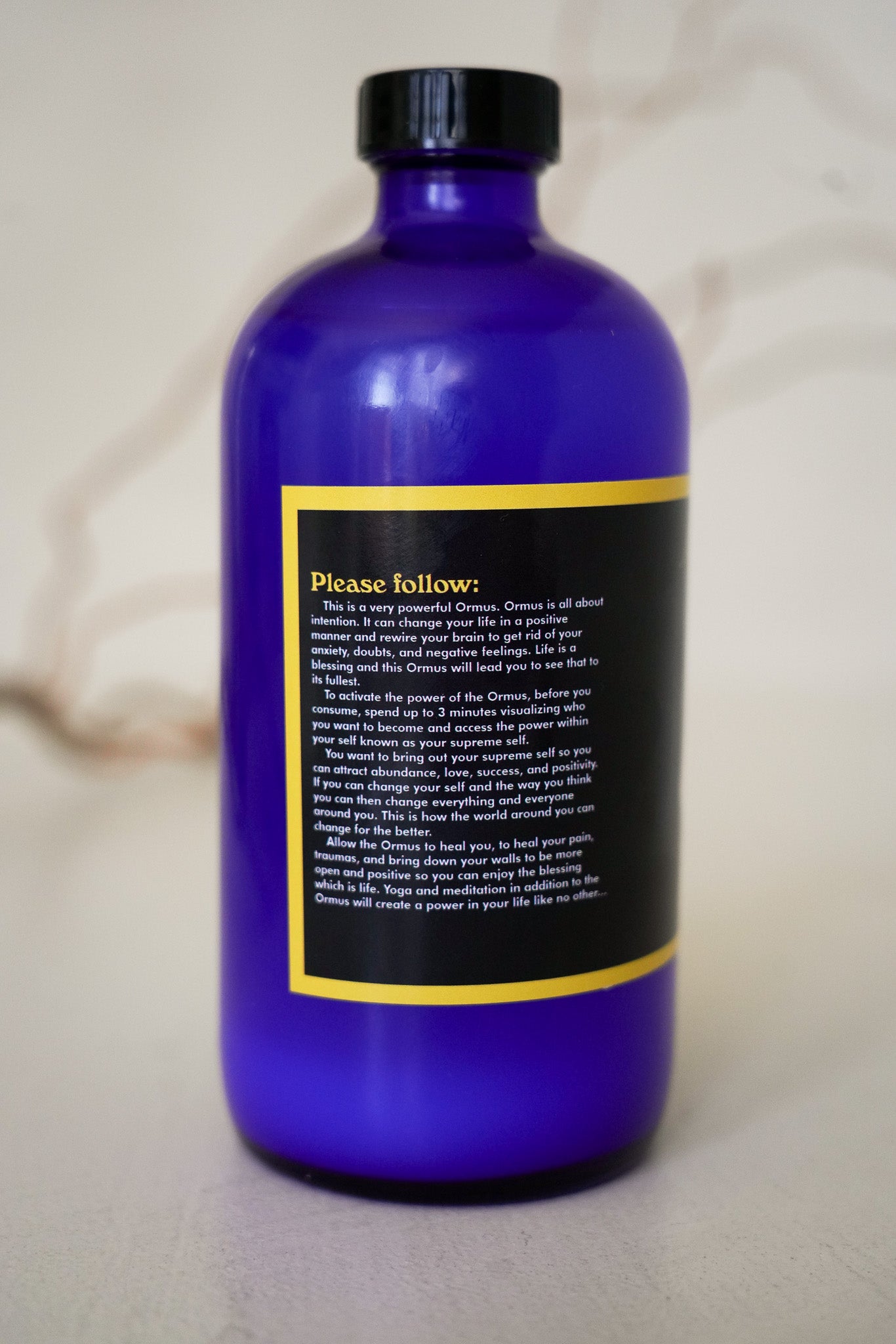 Follow the path of healing written on the side of the bottle when consuming for full healing effects of ormus