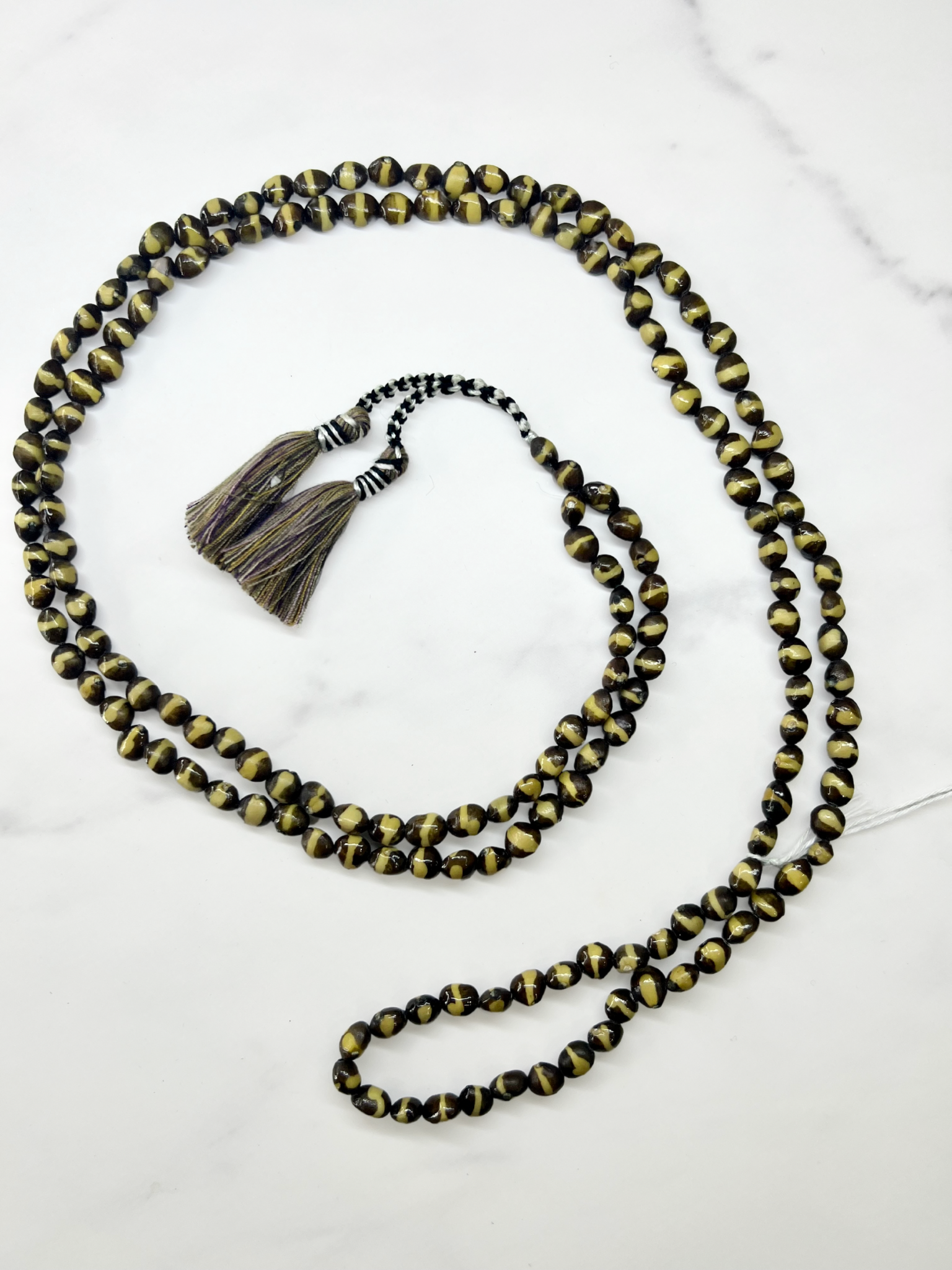 Our Pistachio Seed Prayer Necklace is a timeless symbol of spiritual devotion and cultural heritage. Handcrafted with care in a quaint village nestled in the heart of the Middle East, this mala necklace embodies centuries of tradition and reverence.
