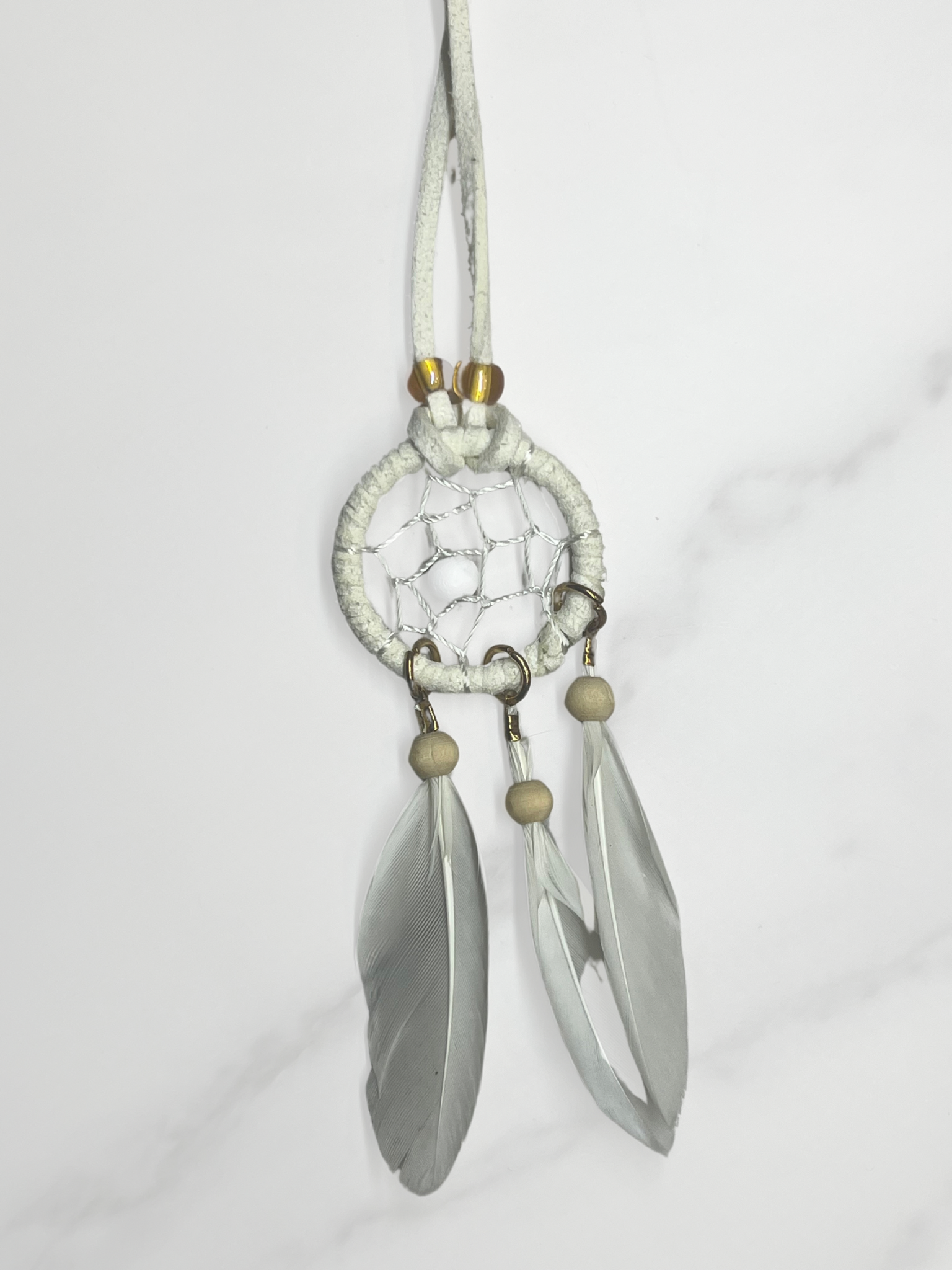 Small Beige Dreamcatcher: Compact and elegant, this small beige dreamcatcher is a subtle addition to any area, bringing protection and style to smaller spaces like work areas or cars.