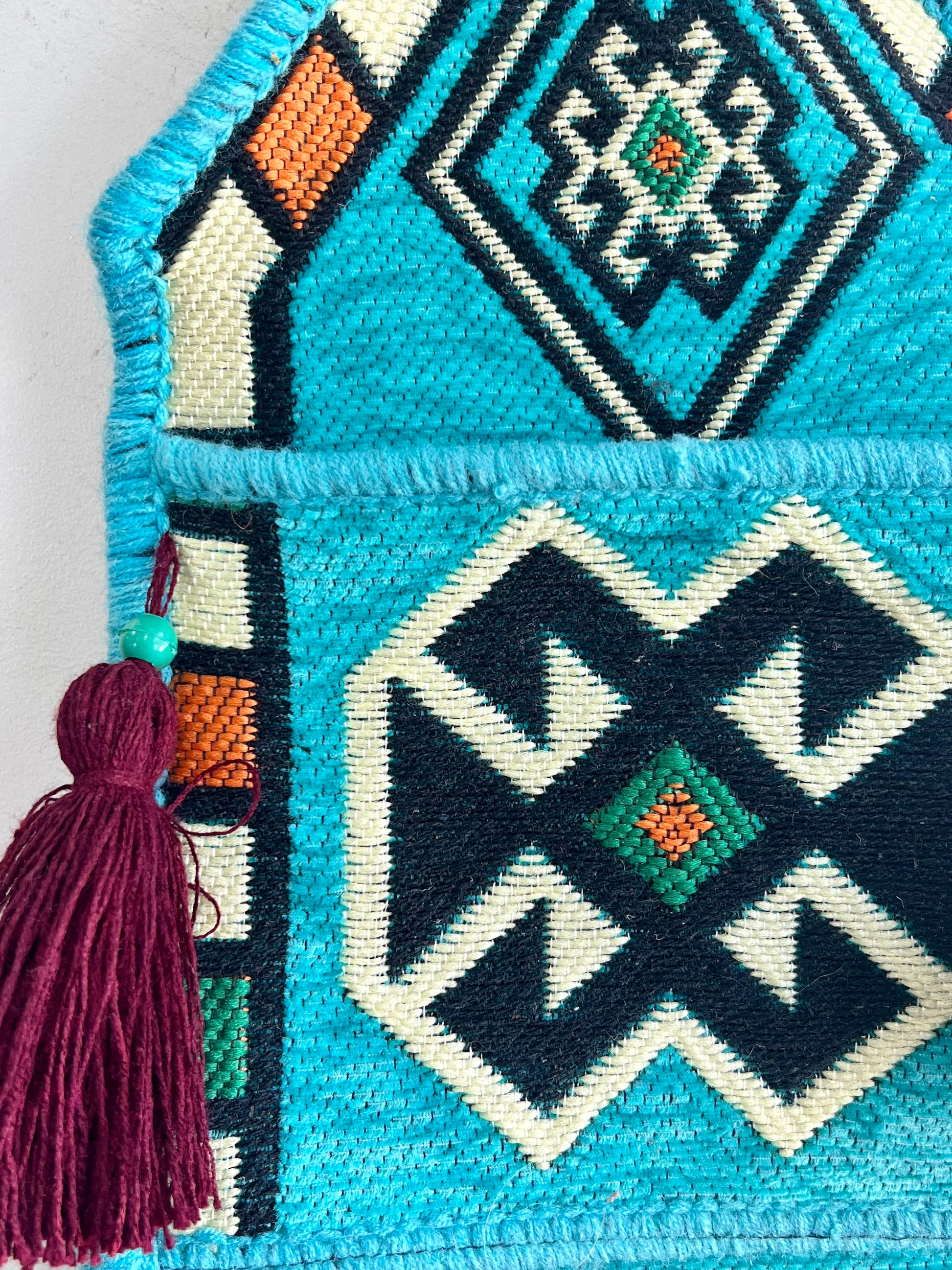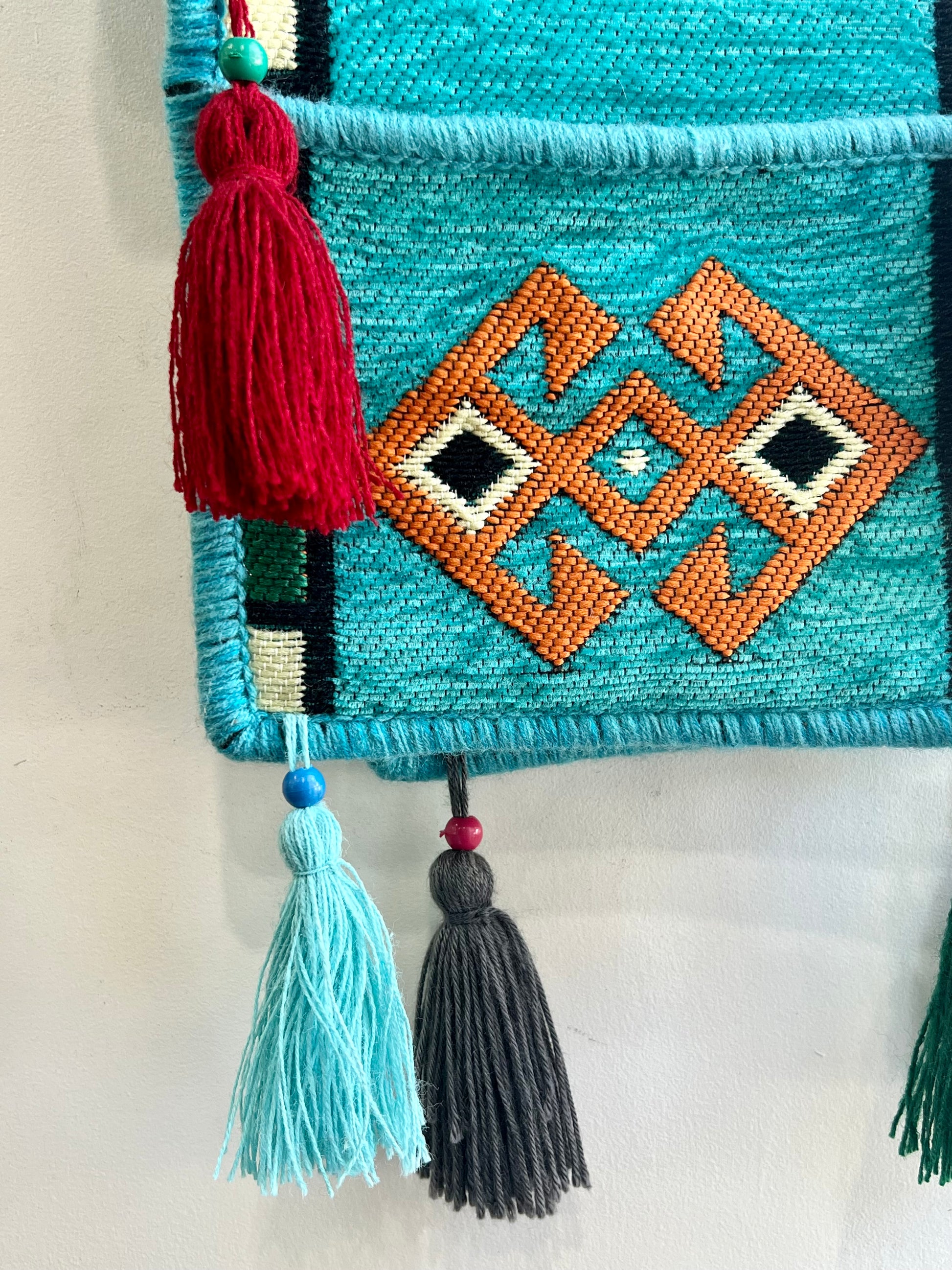 This stunning handwoven wall organizer is crafted from 100% cotton by an indigenous tribe in Kermanshah, Iran. Each piece is meticulously handmade, blending traditional artistry with practical elegance. Perfect for adding a touch of cultural beauty to your home decor. Each purchase gives back to the artisan who made it.